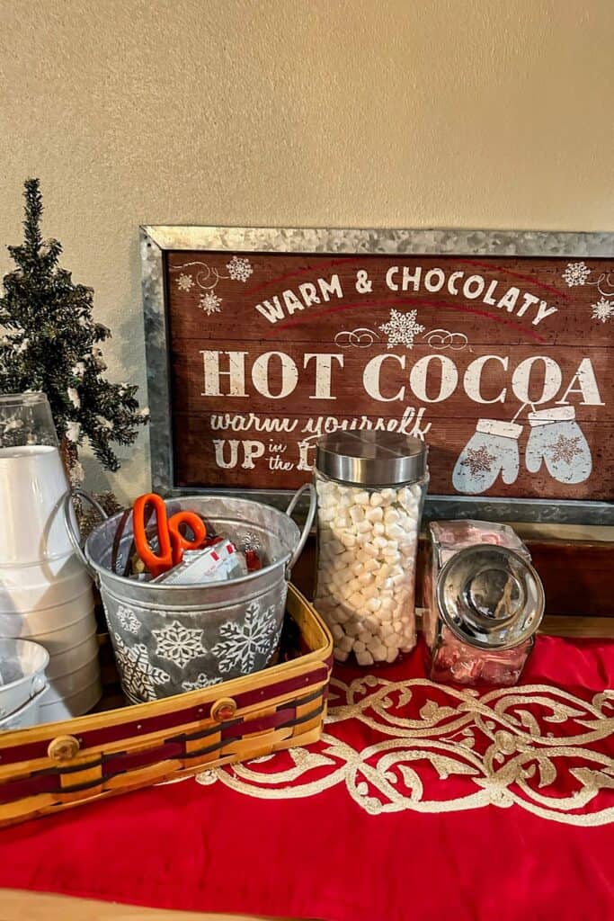 Buy some plain white ceramic mugs and oil-based paint markers. Guests can draw their own Christmas designs or write their names. Once they’re done, you just bake them according to the marker instructions to set the design. It’s the perfect vessel for that hot cocoa bar.