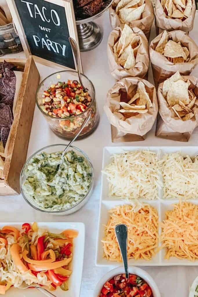 Pro Tip: Add some heat by including a range of hot sauces, from mild to extra spicy, so guests can customize their tacos. For an extra festive touch, label each topping with colorful tags.