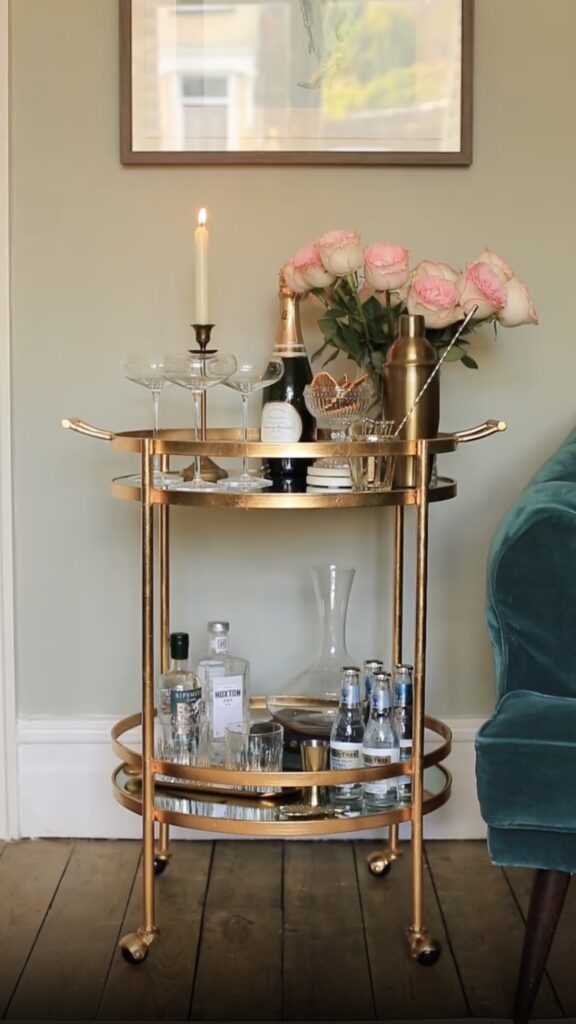 I wanted a space that felt curated and intentional, not just a storage unit for my stuff. I desperately wanted a bar cart—that universal symbol of “I have my life together”—but I was convinced I didn’t have the room.